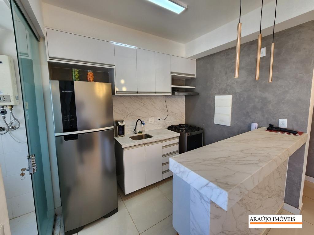 APARTAMENTO MOBILIADO COM 67m2, 02 QUARTOS SENDO UMA SUITE AMBOS COM ARMÁRIOS, BANHO SOCIAL MONTADO, SALA PARA 02 AMBIENTES COM VISTA, COZINHA MONTADA E ÁREA DE SERVIÇO.